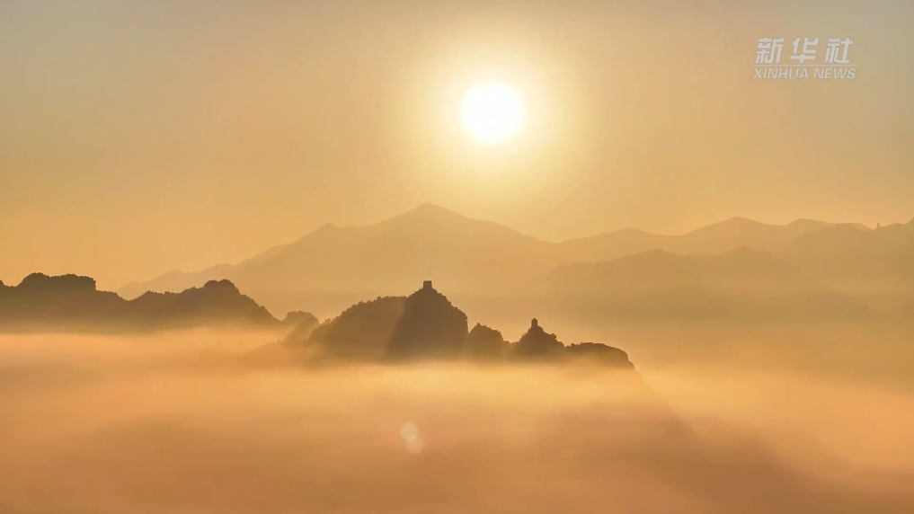 近日,在河北承德滦平县金山岭长城出现云海景观,日出时刻与云海同框,景色美如画卷。