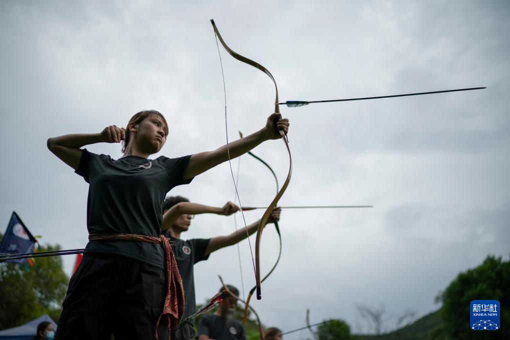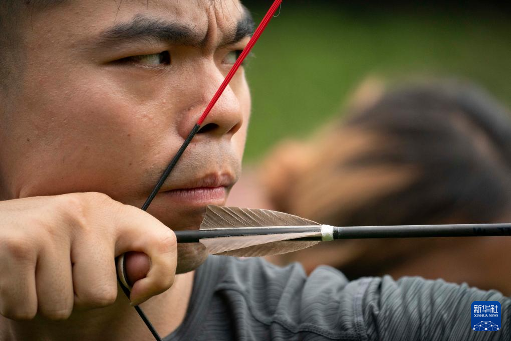 香港元朗的一个农庄里,十几位弓箭手一字排开,手持竹木和动物角制成的中国传统弓,若干支箭收纳于皮质箭筒挂在腰间。搭箭、举弓、瞄准……拉满的弓仿佛一只只振翅欲飞的大雁,“唰唰唰”,树叶间响起箭矢划破空气的干脆声音。