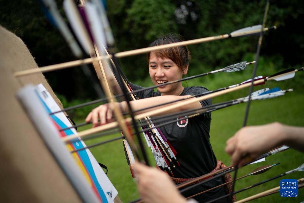 8月31日,香港中华传统弓总会学员杨芷欣在训练。新华社发(吕小炜摄)