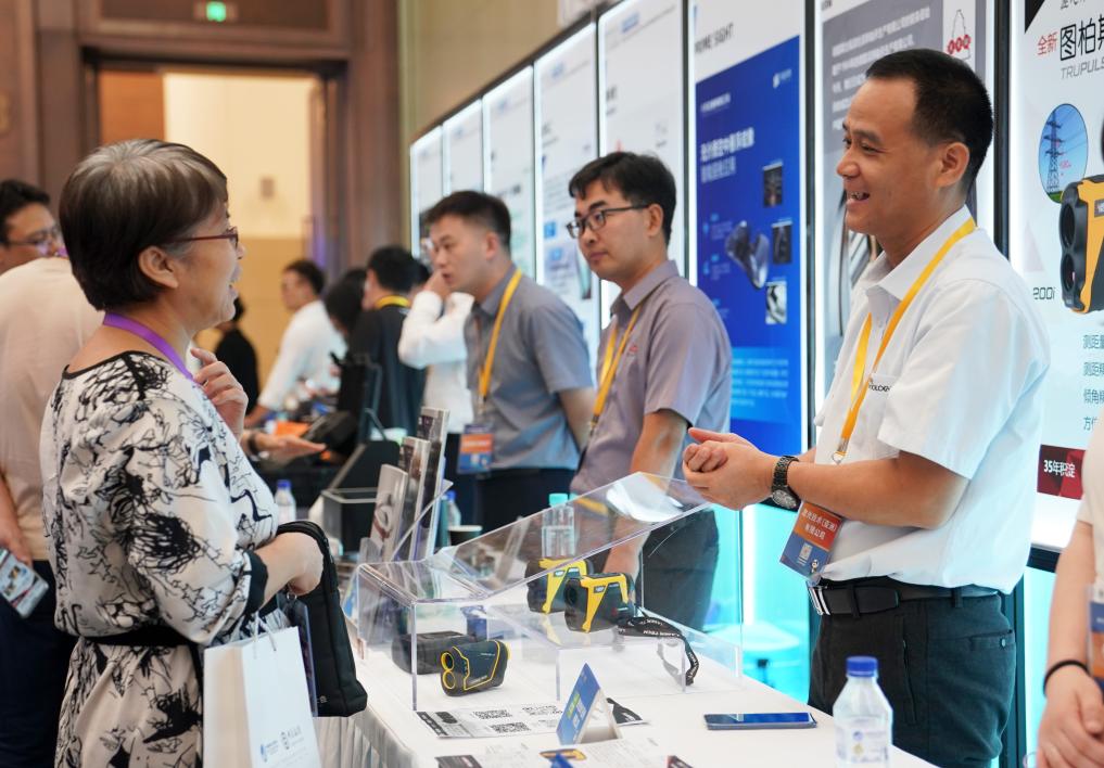 8月8日,在上海举行的第七届进博会技术装备、汽车展区展前供需对接会现场,展商工作人员(右)向采购商介绍企业产品。新华社发(陈浩明摄)