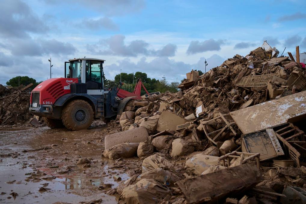 11月1日,在西班牙巴伦西亚省,车辆进行清理工作。新华社发(巴勃罗·莫拉诺摄)