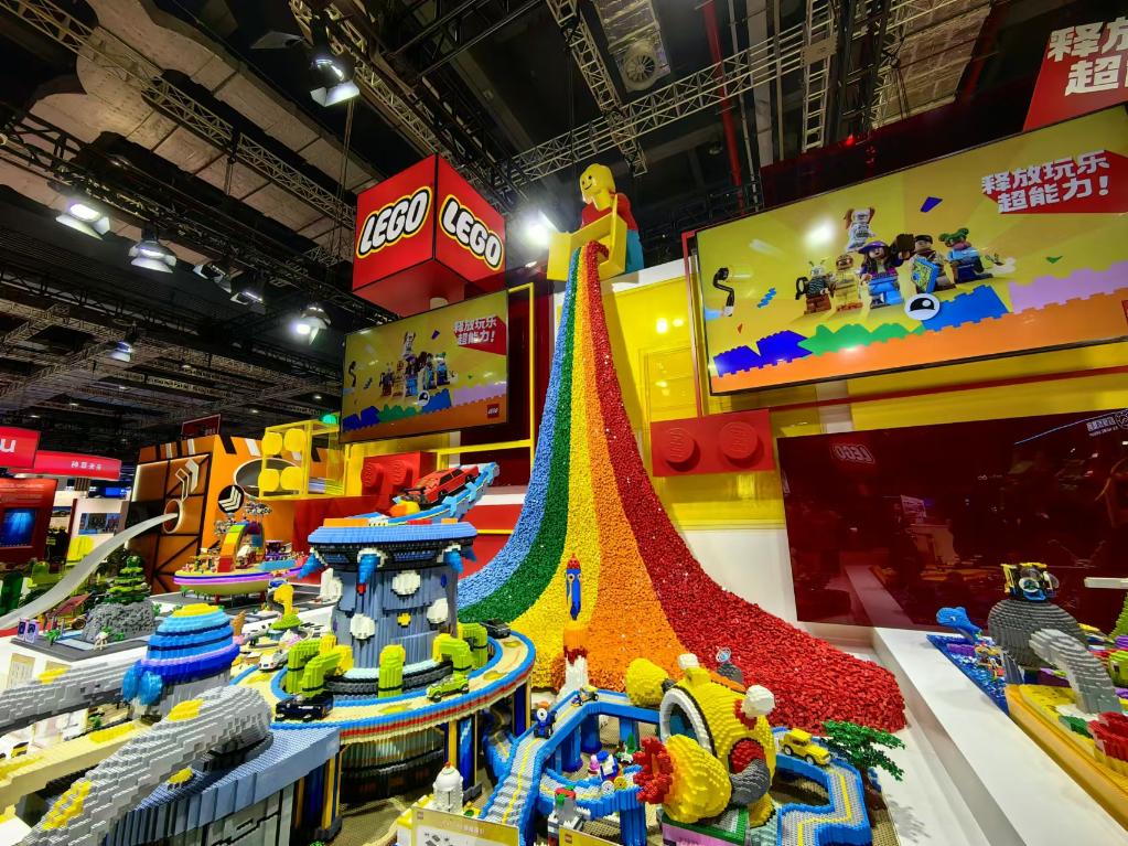 第七届进博会上乐高集团展位中的巨型装置。新华社记者 周蕊 摄