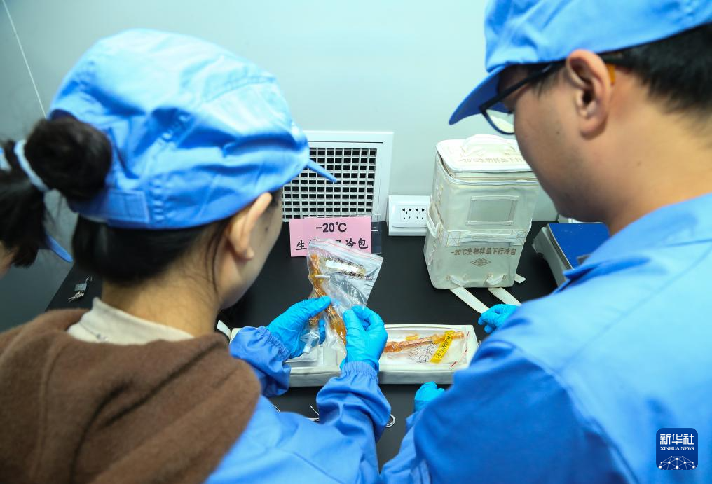 11月4日,在位于北京的中国科学院空间应用工程与技术中心,工作人员检查返回实验样品转运包状态。新华社发(中国科学院空间应用工程与技术中心供图)
