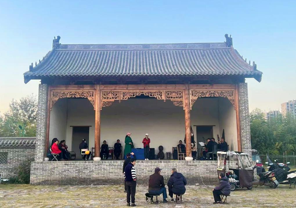 11月6日,在焦作市天河公园一处戏台上,几名市民在唱戏。新华社记者 郝源 摄