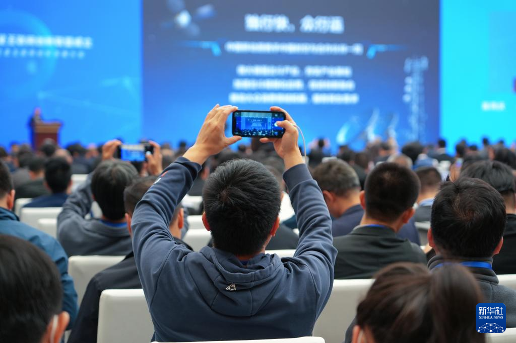 11月6日,嘉宾在中国空天信息和卫星互联网创新联盟成立大会现场拍照。新华社发(落飞麟摄)