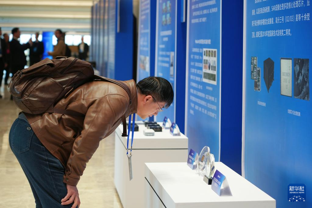 11月6日,嘉宾在雄安新区举办的空天信息创新发展成果展览上参观。新华社发(落飞麟摄)