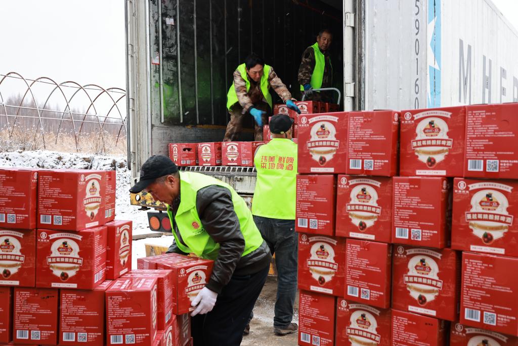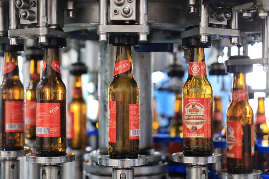 10万瓶蔓越莓精酿啤酒准备从抚远发往南宁。新华社发