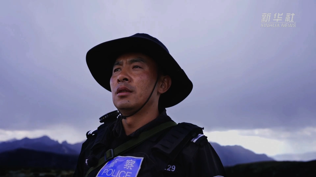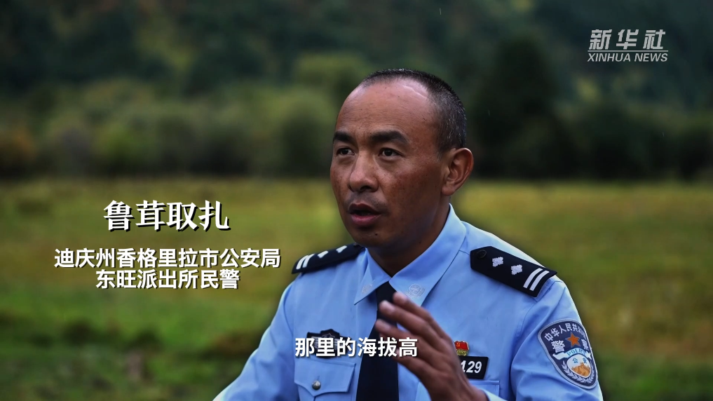 云南省迪庆藏族自治州香格里拉市公安局东旺派出所民警鲁茸取扎和战友们一起常年守候在海拔4800米的雪峰上,在东旺乡开展“伴随式”驻山执勤,为群众提供紧急救助、交通保障和纠纷调解等服务,守护辖区群众安全。