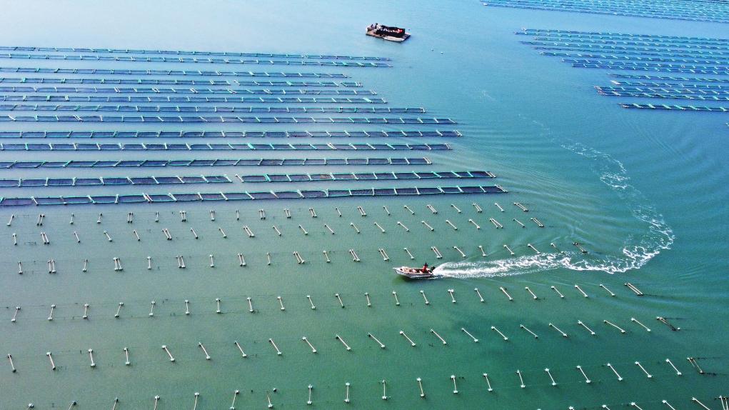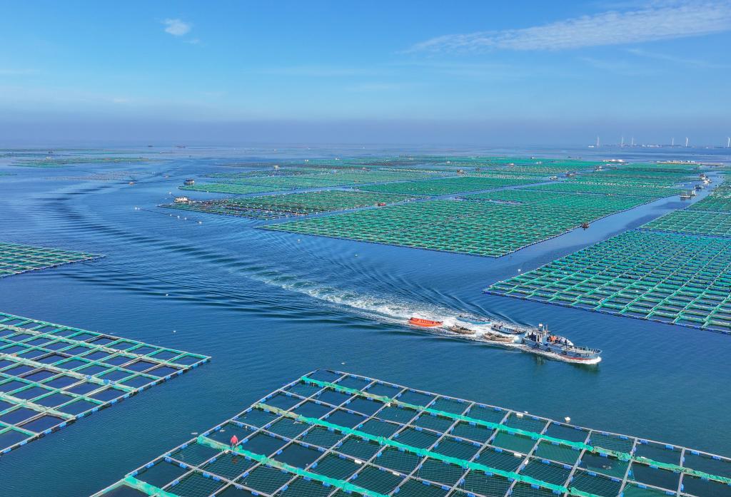 近日,“海上粮仓”养殖工人忙于海上作业,供应市场需求,一派繁忙景象。