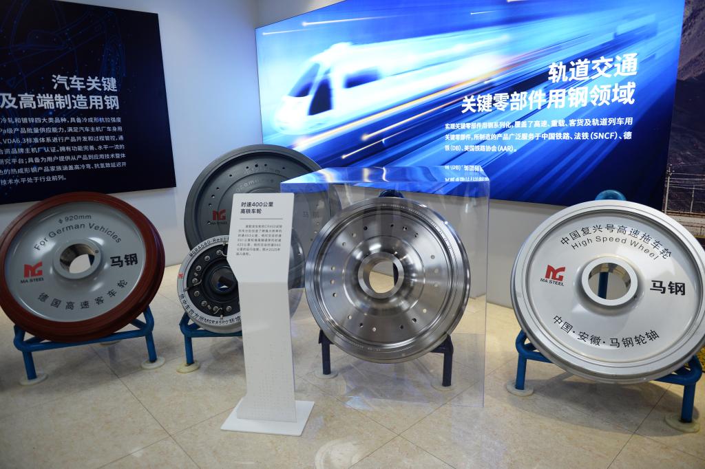 这是在宝武集团马钢展厅拍摄的车轮展品。新华社记者 刘勇贞 摄