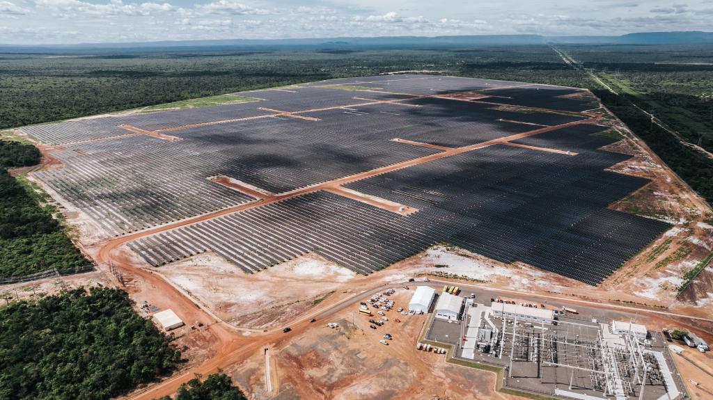 这是2024年6月7日在巴西皮奥伊州拍摄的由中国国家电力投资集团公司(国家电投)巴西公司投资并主导建设的马兰加图光伏电站(无人机照片)。新华社记者 王天聪 摄