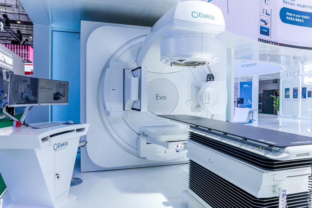 医科达在进博会上“亚洲首发”智能自适应一体化放疗平台Elekta Evo。新华社发
