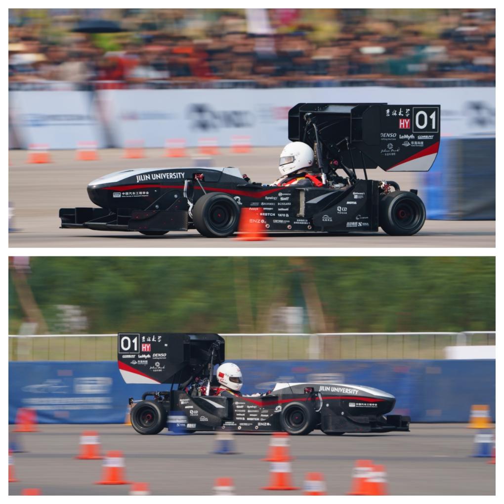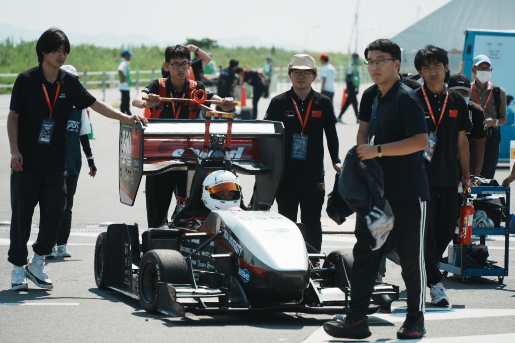 ↑吉林大学学生赛车队在2024年日本大学生方程式汽车大赛比赛中