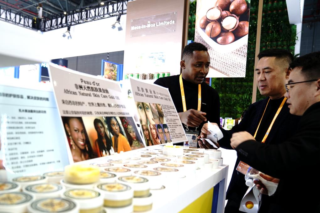 第一次参加进博会的贝宁参展商特雷西带来了乳木果油。“这是一个了不起的博览会。我非常兴奋能来到这里。我们期待在这里找到长期合作伙伴。”她说。