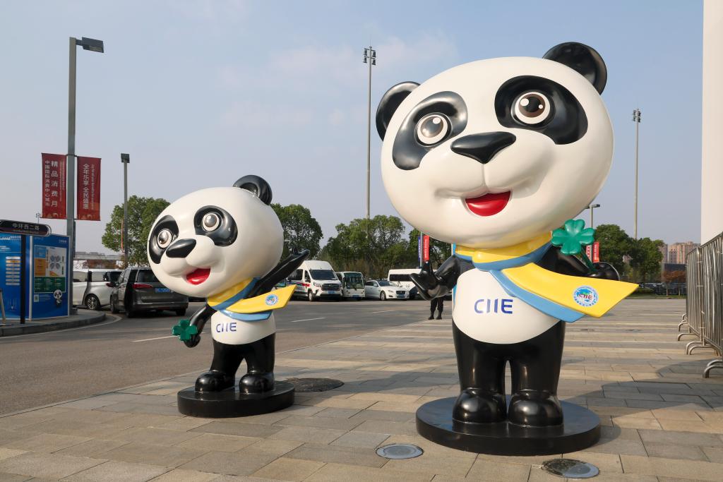 11月4日在第七届中国国际进口博览会举办场地——国家会展中心(上海)拍摄的进博会吉祥物“进宝”。新华社记者 王翔 摄