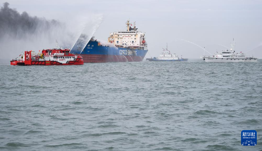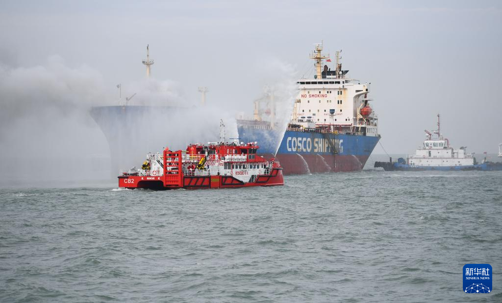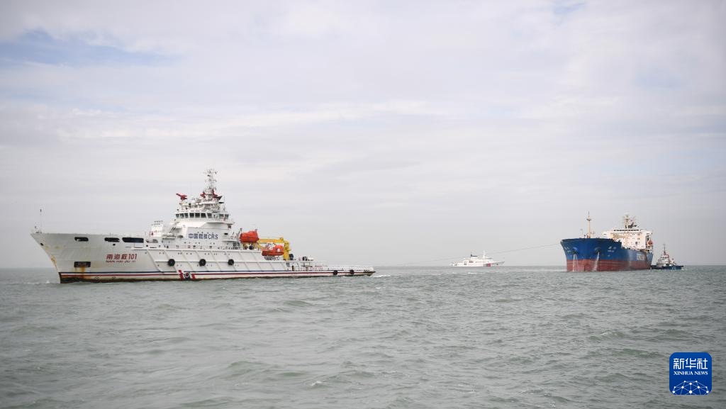 11月9日,应急救援力量在演习中拖带船只。新华社记者 邓华 摄