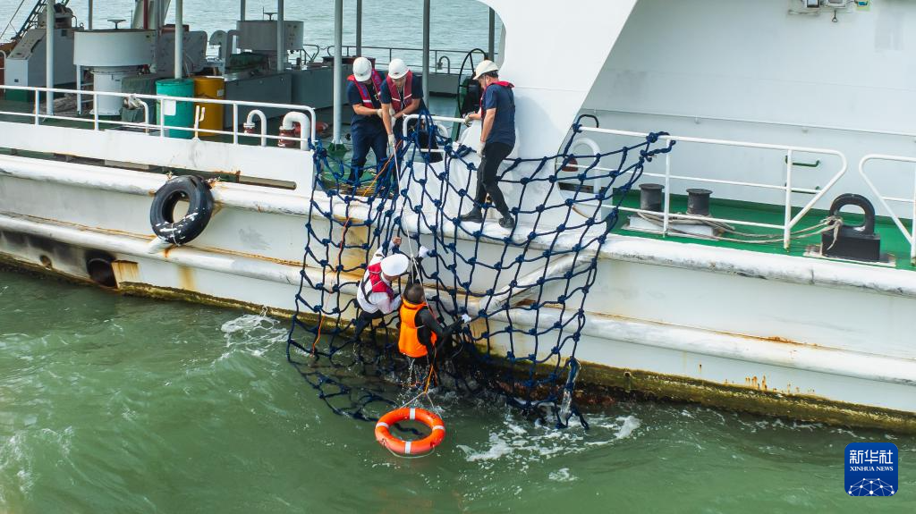 11月9日,广东应急救援人员在演习中营救落水人员(无人机照片)。新华社发