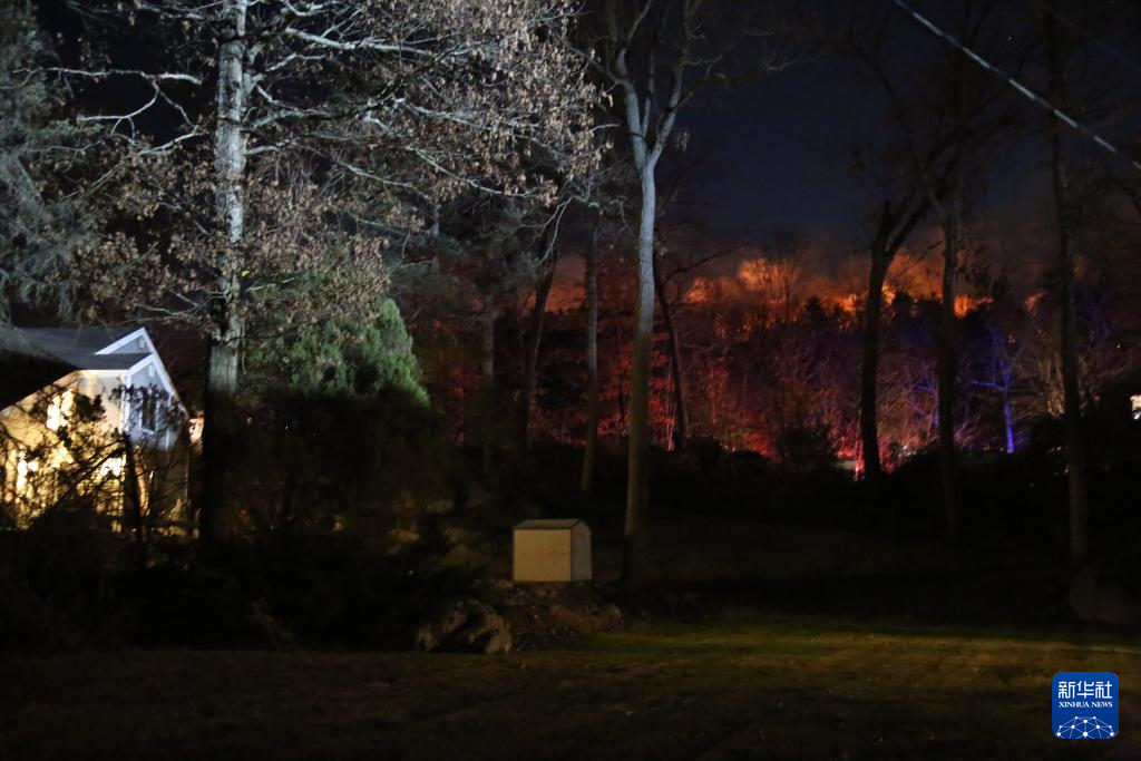11月9日,美国纽约州与新泽西州交界地区附近山火照亮夜空。新华社记者 刘亚南 摄