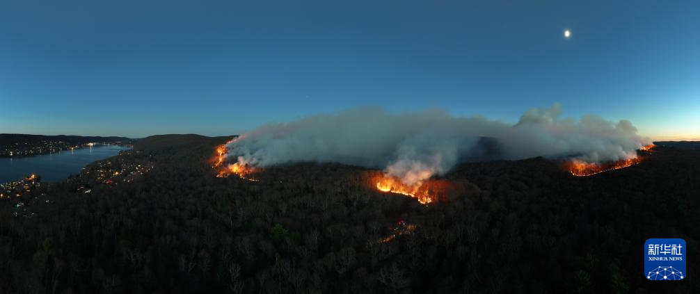 这是11月9日在美国纽约州与新泽西州交界地区拍摄的山火(无人机照片)。新华社发
