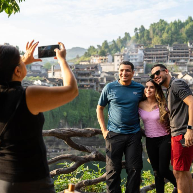 同样被芙蓉镇美景吸引的还有哥斯达黎加的何塞·查韦斯。“我在网上看到这里的一瞬间就爱上了这个地方,我为这次旅行筹备了一年。”何塞说,从入境、预订酒店到交通出行等所有过程都非常顺利。他将和朋友们在中国开展为期12天的旅行。