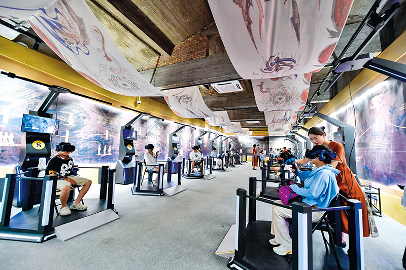 游客在敦煌体验“寻境敦煌——数字敦煌沉浸展”(2024年7月22日摄) 郎兵兵摄 / 本刊