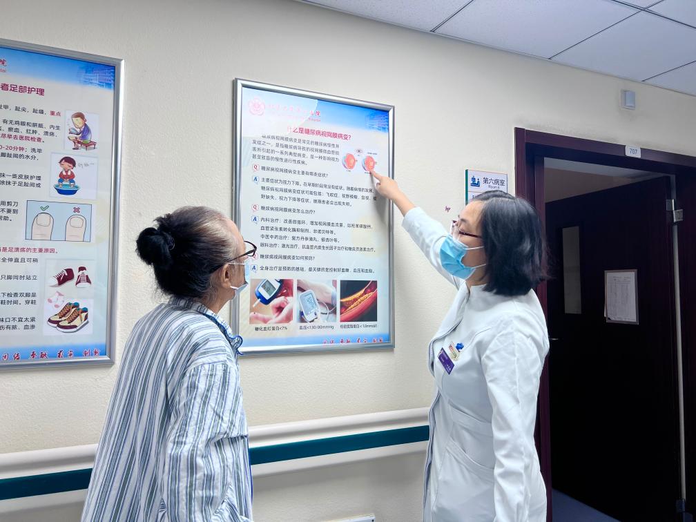 图为北京大学第三医院糖尿病专科护士为住院患者宣教如何预防糖尿病视网膜病变。新华社发