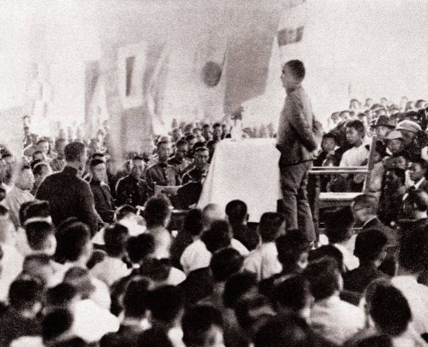 1924孙中山在广东高师礼堂演讲三民主义。(来源:中大校庆官网)