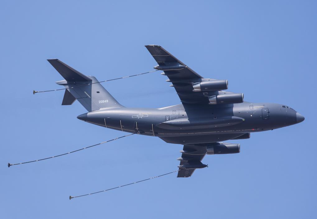 被誉为“空中加油站”的运油-20以其独有的战斗姿态出现在珠海上空。运油-20飞机是我国自主研制生产的大型加油机,可有效增强航空兵远程机动能力。