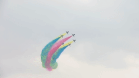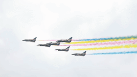 随着六架飞机直冲云霄,红黄蓝三色尾迹在天空留下绚烂的轨迹。备受关注的中国空军“八一”飞行表演队亮相珠海,携多个创新动作炫舞蓝天,赢得阵阵喝彩。
