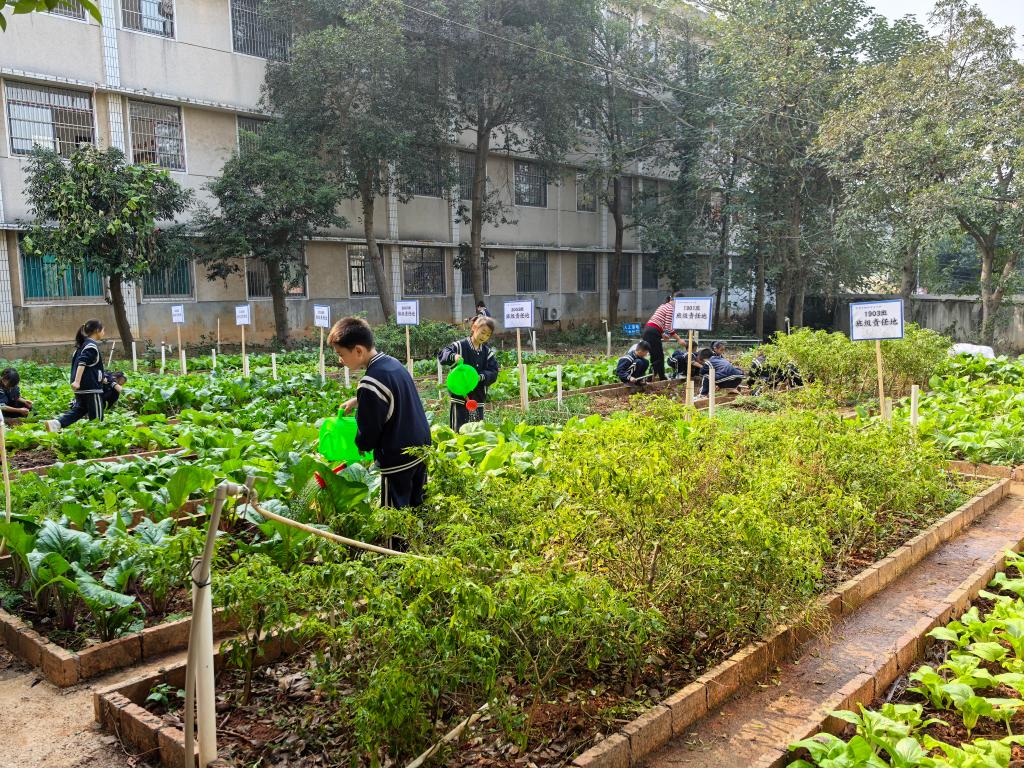 9月初,四年级的谢莫湉湉和班上同学第一次种白菜。一连几日,学生们每天早晚轮流施肥、浇水,很快菜根就烂了。“当时大家心里很不好受,努力白费了。老师教育我们要有耐心,不能气馁。”谢莫湉湉说,“后来我们及时补种,按老师说的规律浇水,白菜健康生长啦。”