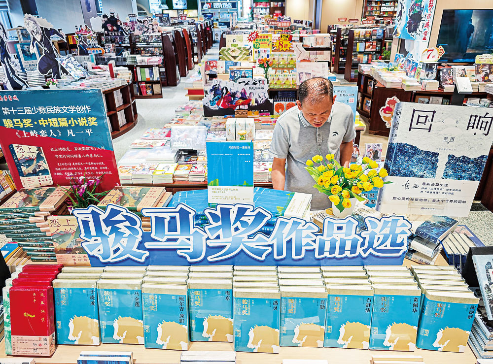 11月14日,读者在广西南宁书城查阅骏马奖获奖书籍,部分书籍为广西作家作品。新华每日电讯记者陆波岸摄