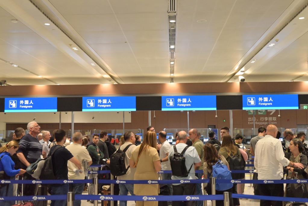 外国人在大兴机场口岸办理出入境手续。(受访者供图)
