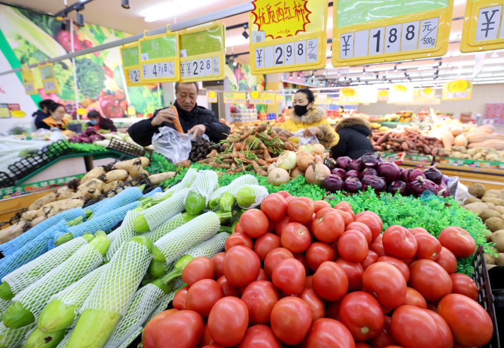 2023年12月9日,消费者在山东枣庄一家超市选购蔬菜。