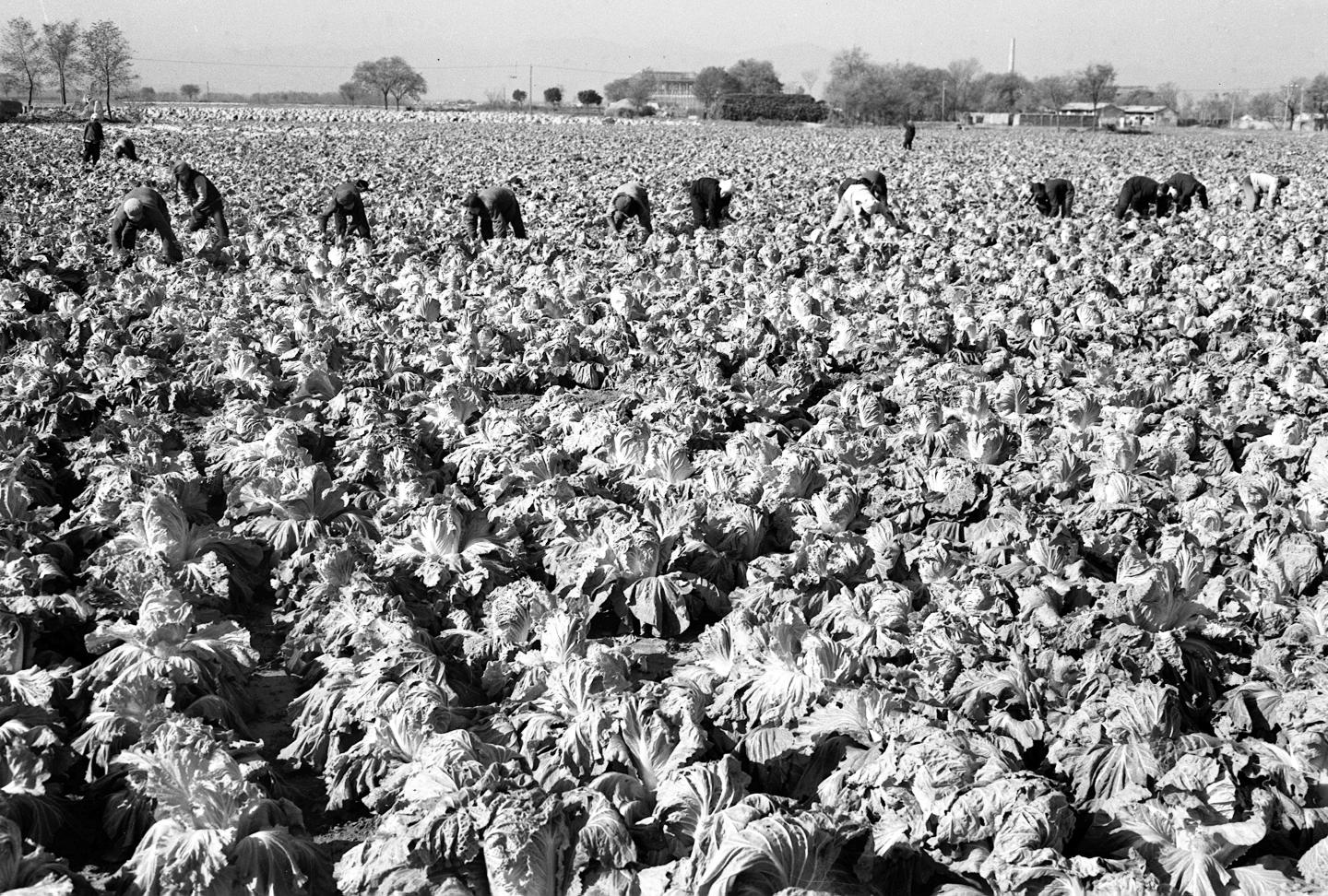 1959年,北京卢沟桥人民公社社员在菜地里抢收大白菜。
