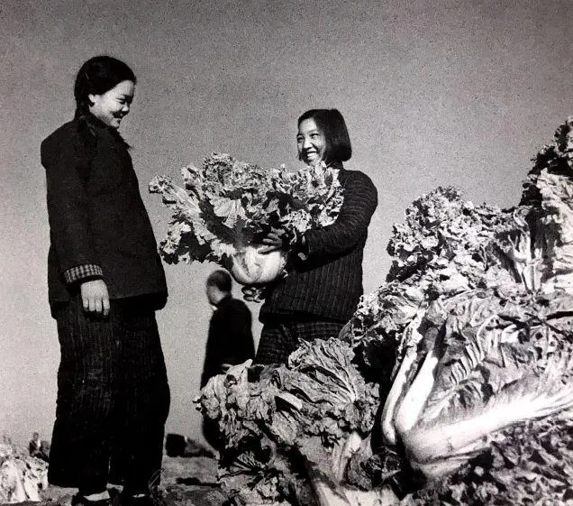 1954年,河北满城要庄乡女社员抱着收获的大白菜。