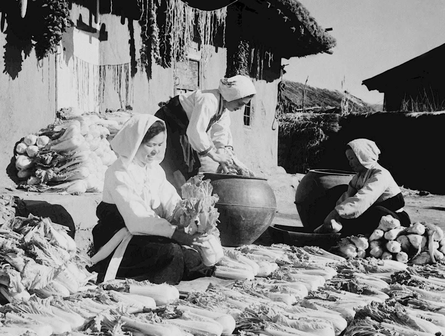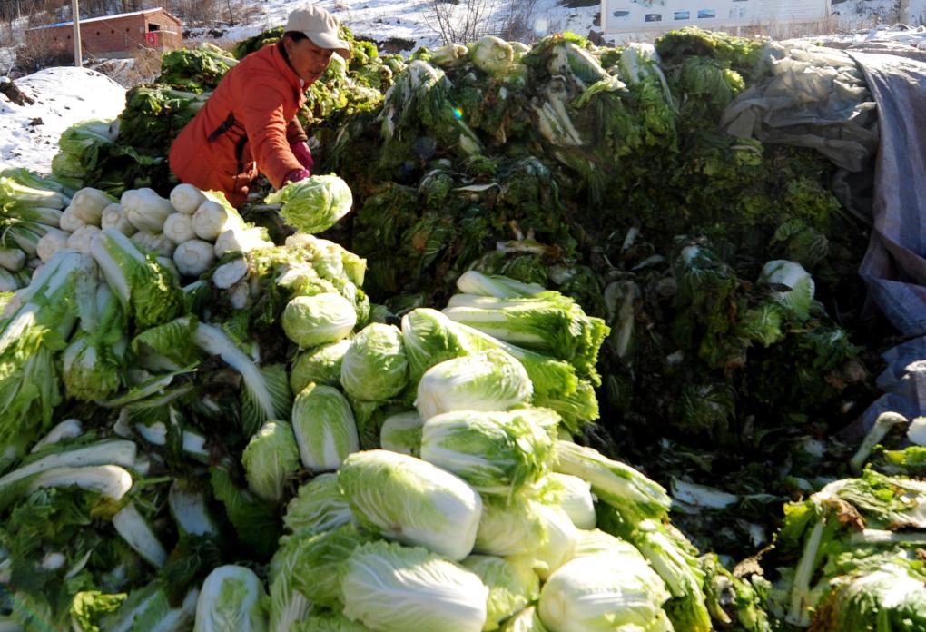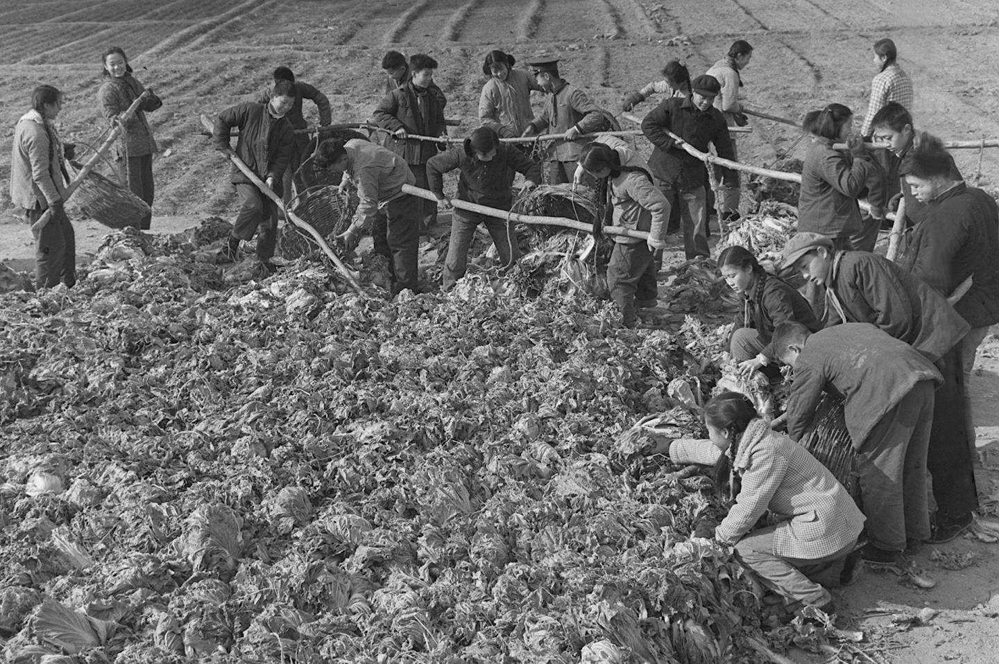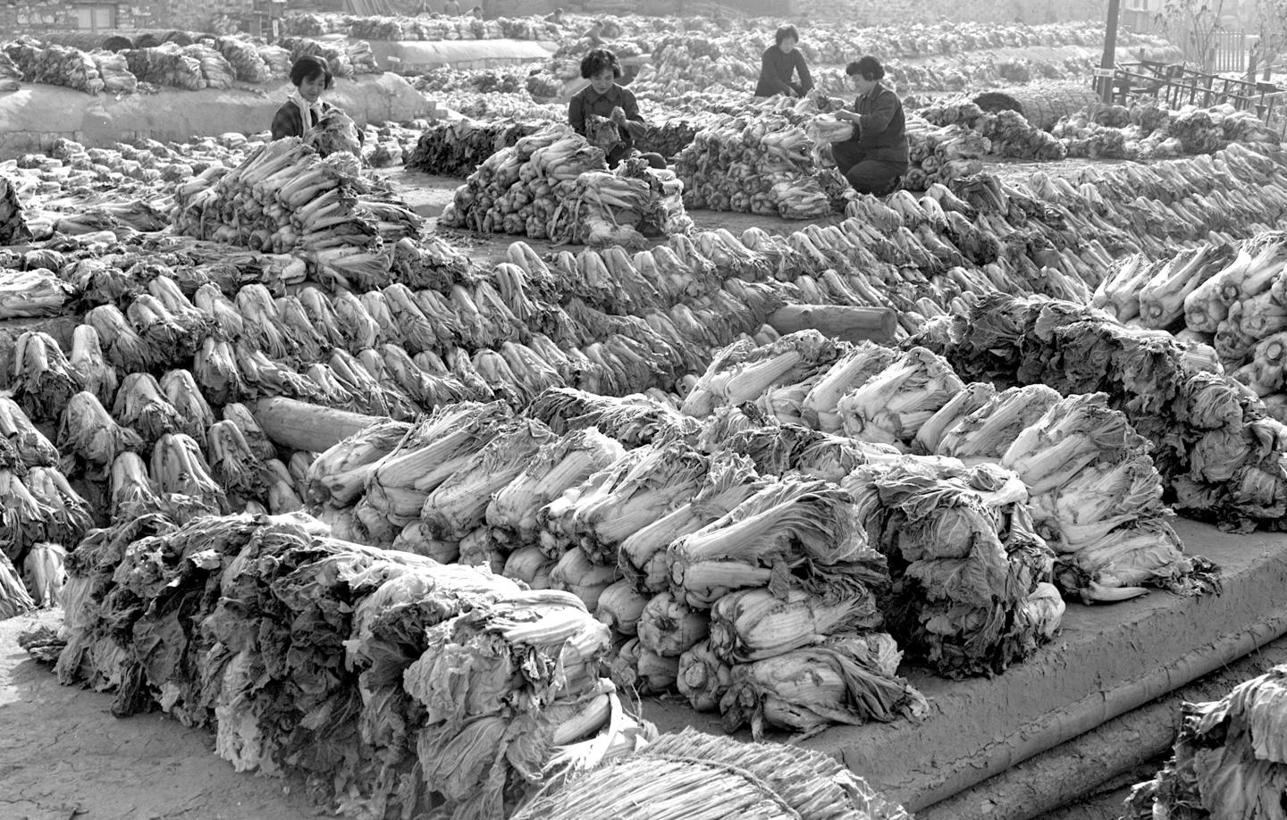 1962年11月,吉林延边汪清县百草沟人民公社社员在腌制白菜。