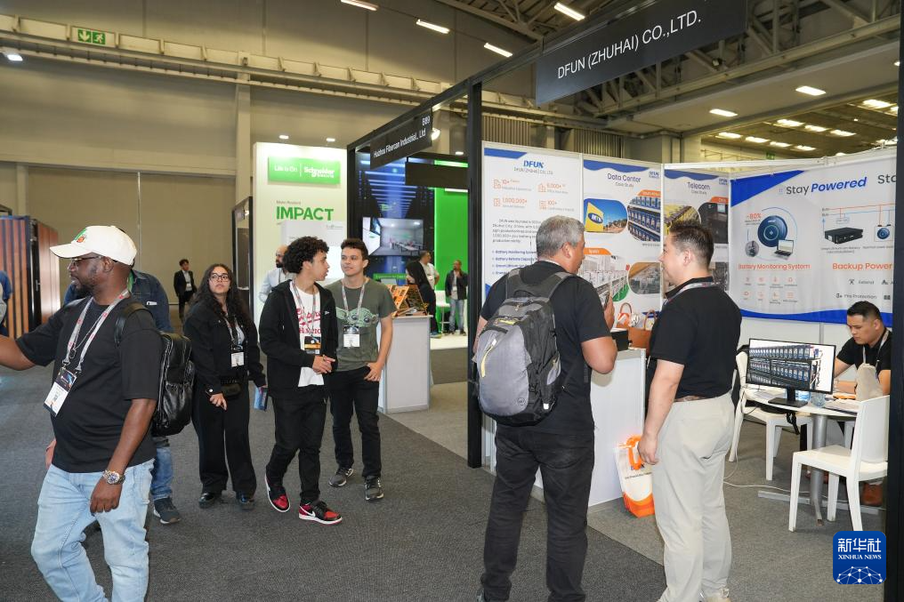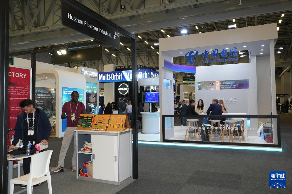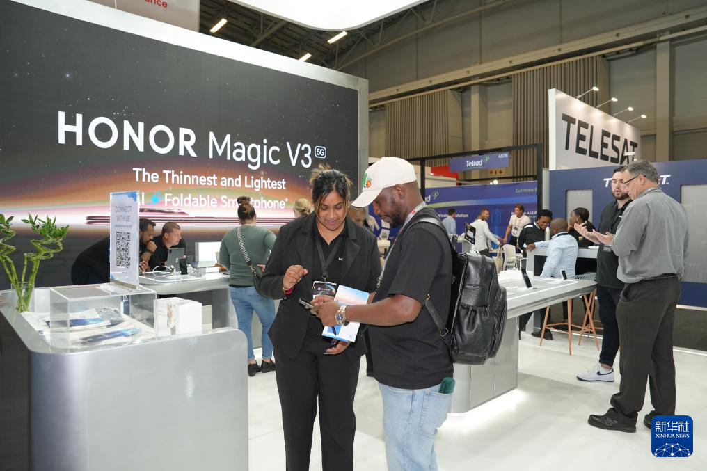 11月14日,人们在南非开普敦举行的非洲科技节主展会之一的非洲通信展上参观中国企业展区。 新华社记者 王雷 摄