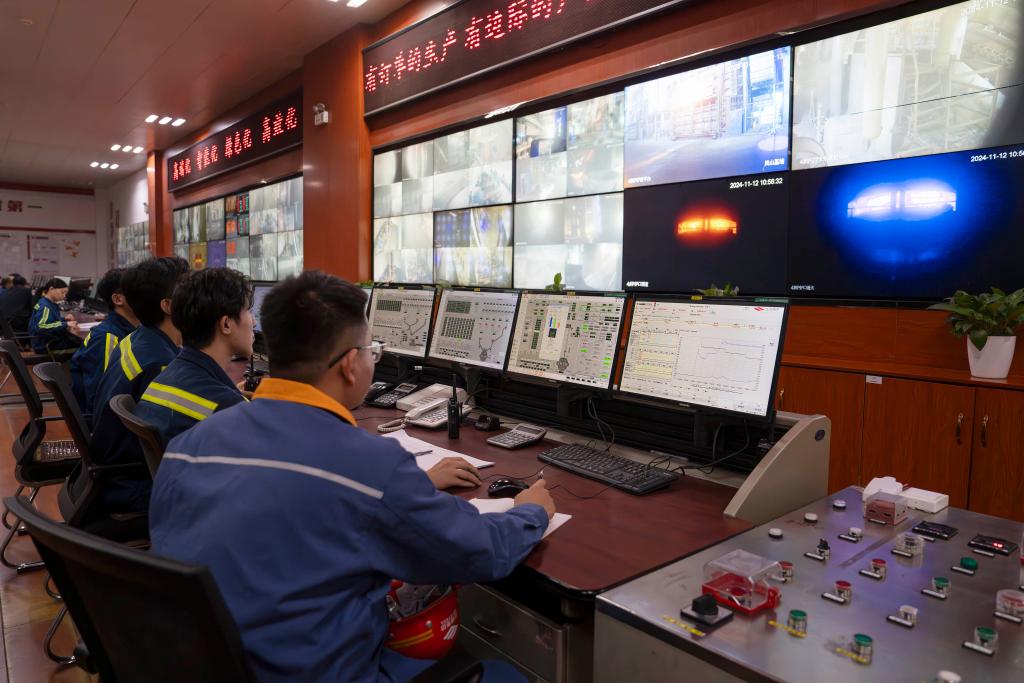 11月12日,在炼钢厂炼钢作业区,工作人员在操作智能化炼钢系统。