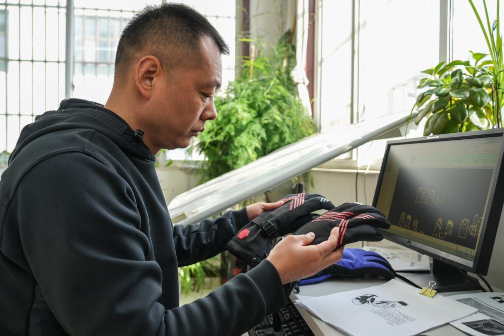 在嘉祥县的一家手套生产企业,员工在研发手套新品。新华社记者 朱峥 摄
