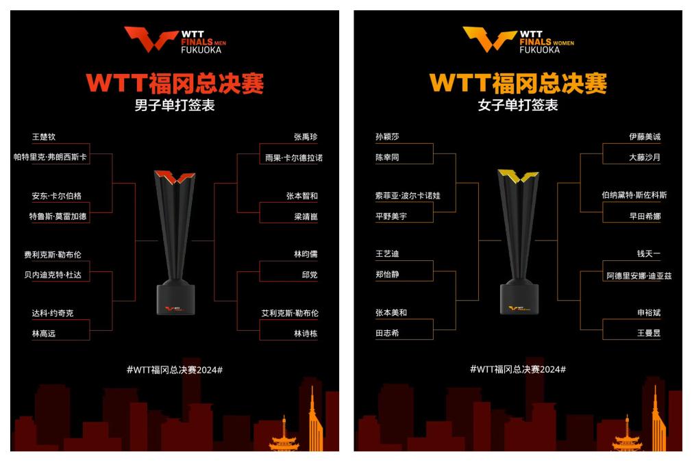 男单、女单签表。图片来自WTT官方社交账号
