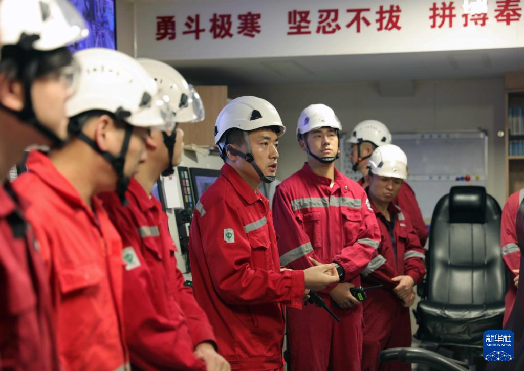 这是“雪龙2”号轮机长李文明(左四)在对全船失电演习进行总结。新华社记者 黄韬铭 摄