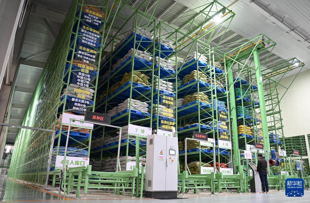 11月4日拍摄的内蒙古呼和浩特市蒙草生态环境(集团)股份有限公司种业中心智能立体库。新华社记者 贝赫 摄