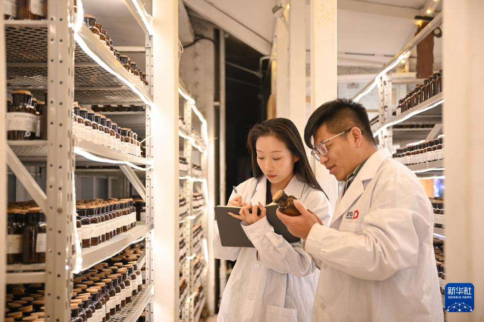 11月4日,在内蒙古呼和浩特市蒙草生态环境(集团)股份有限公司种业中心生态种质资源库,科研人员在记录土壤样品数据。新华社记者 贝赫 摄