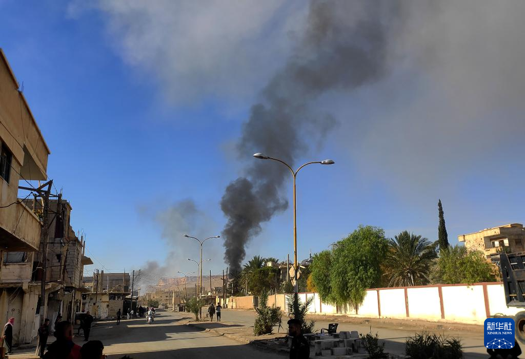 11月20日,叙利亚巴尔米拉市遭空袭后升起烟雾。新华社发