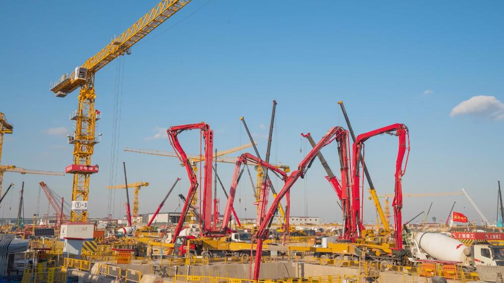 20日,浦东机场四期扩建航站区主体工程开工仪式在航站区施工工地现场举行。