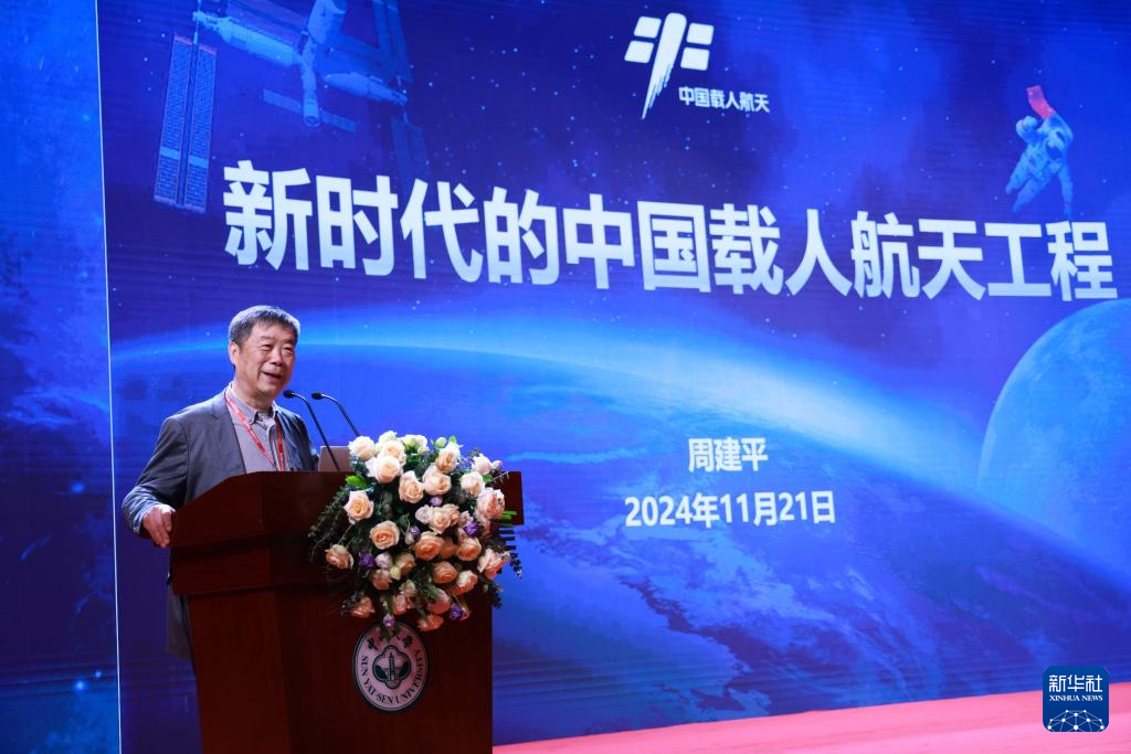 11月21日,中国载人航天工程总设计师周建平在深圳召开的第六届载人航天学术大会上作主旨报告。新华社发