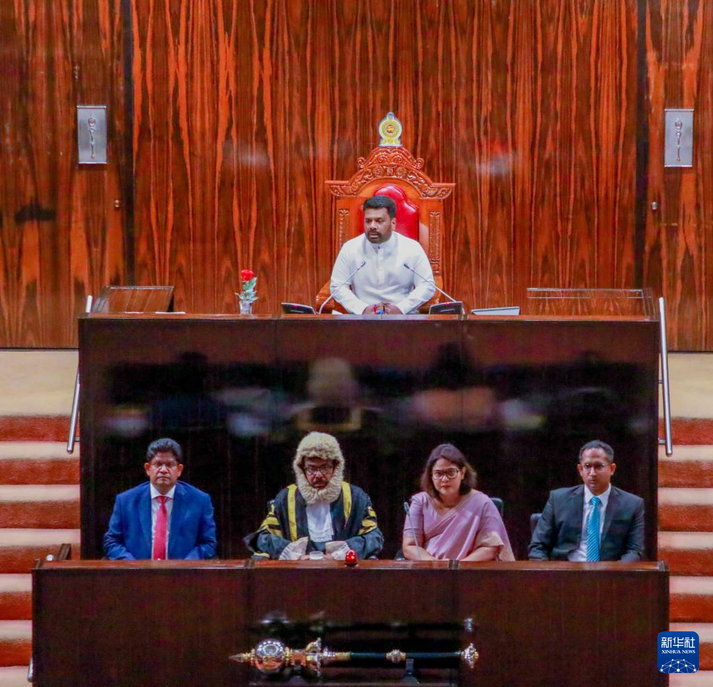 11月21日,斯里兰卡新一届议会召开首次会议,斯里兰卡国家人民力量党议员阿索卡·兰瓦拉(中)当选新一届议会议长。新华社发(斯里兰卡政府新闻部供图)