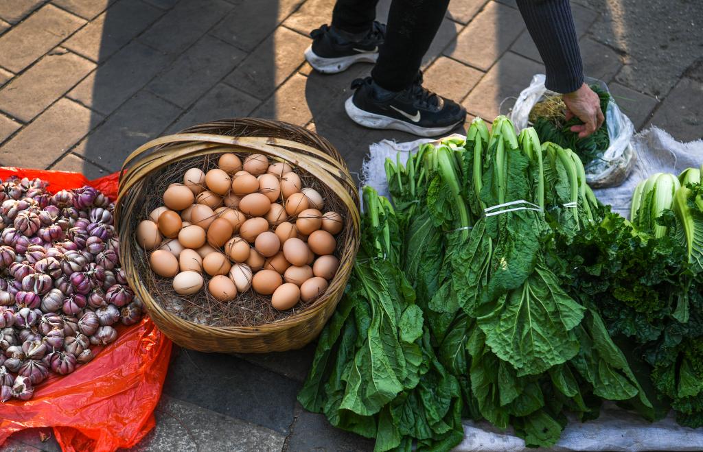 市民在贵阳市大营坡附近选购“惠农专线”公交车运送来的新鲜农产品(11月7日摄)。