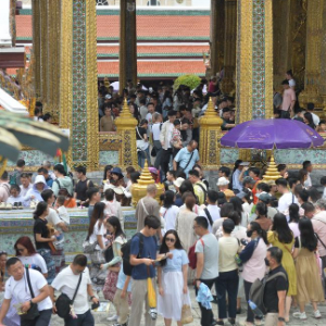 10月3日,中国游客在泰国曼谷大皇宫游览。新华社发(拉亨摄)