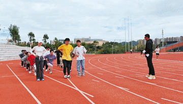 在田径场,学生们正在上